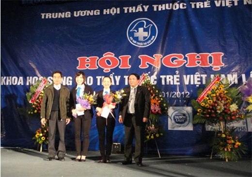 ThS.BS. Nguyễn Xuân Trang (thứ 2 từ phải sang) đoạt giải nhì với đề tài báo cáo tại hội nghị.