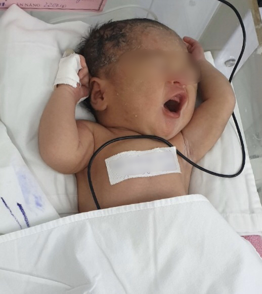 Cuộc phẫu thuật gặp khó khăn khi tử cung ứ máu dính rất chặt vào đại tràng sigma, nguy cơ gây thủng ruột già. Cố gắng bóc tách cẩn thận các khối dính, bác sĩ cắt được tử cung ứ máu và may phục hồi cẩn thận. Cha của chị K. nhớ lại: Hồi đó bác sĩ có dặn là khi con lớn và lập gia đình, phải hết sức thận trọng khi có thai. Tui lo lắm. Mổ 3 lần rồi nên rất sợ. May sao cũng có đứa cháu. Chị K. nhập bệnh viện Từ Dũ khi thấy cơn gò tử cung dù thai chưa được 35 tuần, còn 5 tuần nữa mới tới ngày dự sinh. Vì em bé là con so, lại chưa quay về ngôi thuận để có thể sinh thường nên kíp trực phẫu thuật lấy thai. Chỉ 5 tiếng sau nhập viện, chị K đã vỡ òa hạnh phúc khi nghe tiếng khóc to, rõ của một cậu bé khoẻ mạnh cân nặng 2,2kg. Tuy vậy, vì bé non tháng nên được chăm sóc theo dõi tại khoa Sơ sinh.