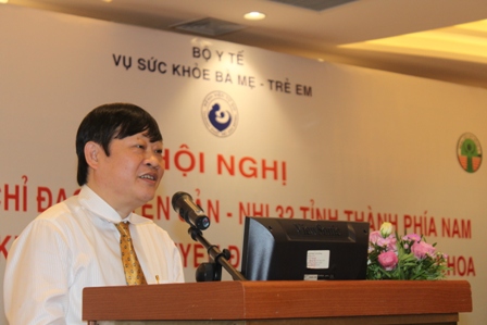 Đến dự và chủ trì Hội nghị có sự tham gia của Pgs.Ts. Nguyễn Viết Tiến – Thứ trưởng Bộ Y Tế, Pgs.Ts. Lưu Thị Hồng –Vụ trưởng Vụ SKBM TE cùng với sự tham gia của Ban giám đốc Sở Y Tế, TTCSKSS tỉnh và Ban giám đốc, khoa sản khoa Nhi của bệnh viện đa khoa tuyến tỉnh 32 tỉnh thành khu vực phía Nam.