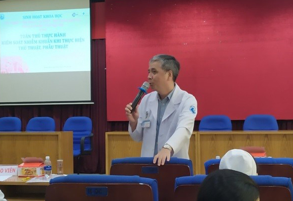 Trong buổi sinh hoạt khoa học ngày 27/6/2019 , qua chuyên đề Tuân thủ thực hành kiểm soát nhiễm khuẩn trong thủ thuật, phẫu thuật, BS.CK1 Nguyễn Đắc Minh Châu đã trình bày về những đổi mới trong Thông tư số 16/2018/TT-BYT của Bộ Y tế ban hành ngày 20/7/2018, quy định về kiểm soát nhiễm khuẩn trong các cơ sở khám, chữa bệnh, có hiệu lực từ ngày 1/10/2018 thay thế Thông tư số 18/2009/TT-BYT. Theo đó, bệnh viện có quy mô từ 150 giường bệnh trở lên phải có hệ thống kiểm soát nhiễm khuẩn. Hệ thống kiểm soát nhiễm khuẩn bao gồm: (1) Hội đồng kiểm soát nhiễm khuẩn, (2) Khoa/bộ phận kiểm soát nhiễm khuẩn, (3) Mạng lưới kiểm soát nhiễm khuẩn. Chủ tịch Hội đồng kiểm soát nhiễm khuẩn phải là Giám đốc bệnh viện.